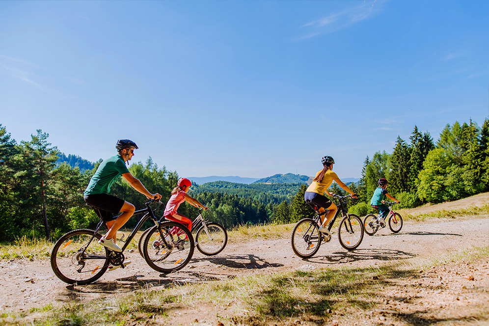 Depending on the route you choose, you can also rent a child bike trailer or use a special shuttle for cyclists, which will take you to the start of the route in one of the park’s picturesque corners.