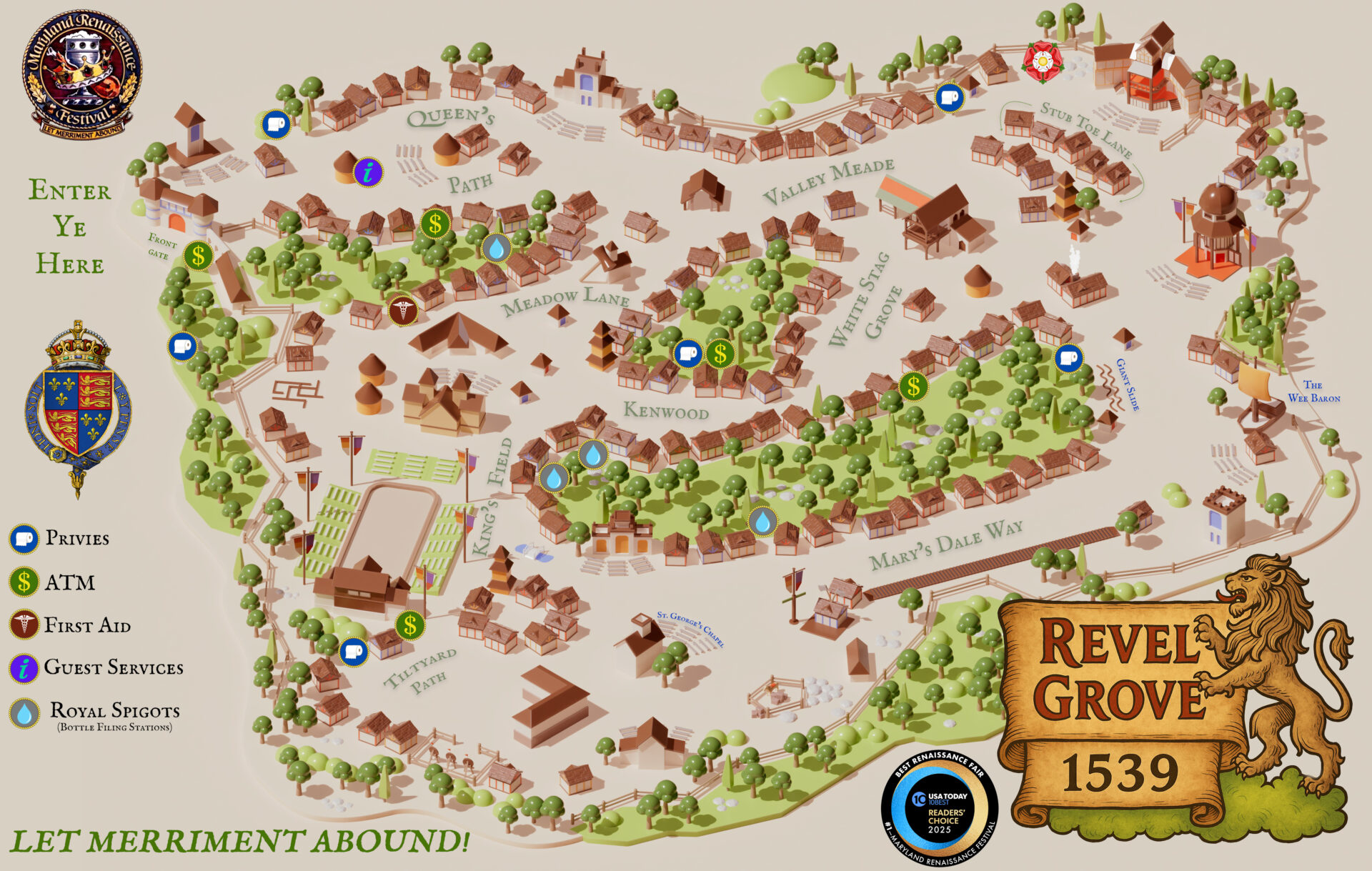 Maryland Renaissance Festival (abbreviated Rennfest) is one of the largest, longest-running, and most colorful festivals in the United States. Each year, Rennfest develops a storyline in which the action takes place in the fictional English settlement of Revel Grove. This year, the festival is dedicated to 1539, the period of Henry VIII’s reign and his intrigues.