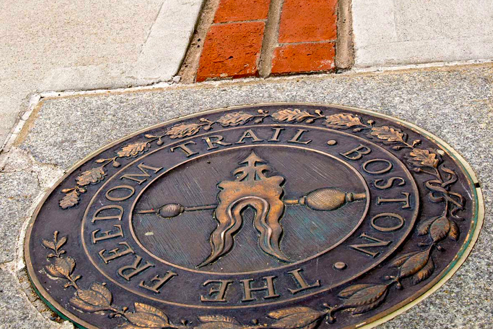 The Boston Freedom Trail is a unique 2.5-mile (4 km) historical route through downtown Boston conceived in 1951 by journalist William Scofield. The trail is marked with a red line of brick or paint on the sidewalks. It connects 16 key sites associated with the history of the American Revolution and the early development of the United States. The route begins at Boston Common, the oldest public park in the United States, and ends at the Bunker Hill Monument in Charlestown.