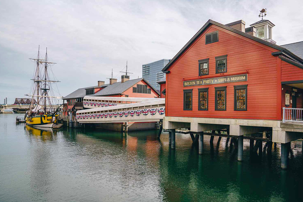 Boston Tea Party Ships & Museum tells the story of the American colonists’ protest against British taxes in Boston on December 16, 1773. The museum houses replicas of the Brig Beaver and Eleanor ships. Through costumed theatrical scenes, visitors are shown a chronology of the events that became symbolic of the struggle against taxation without representation and one of the steps toward the American Revolution. The museum hosts regular and special events, such as tea tastings and reenactments of the sabotage in which American colonists dressed as Native Americans boarded British ships and dumped 342 chests of tea into the harbor.